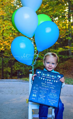 For birthday photos I include balloons at no extra charge, chalkboard image is $10 and both are for you to keep. Add a family photo for $10.